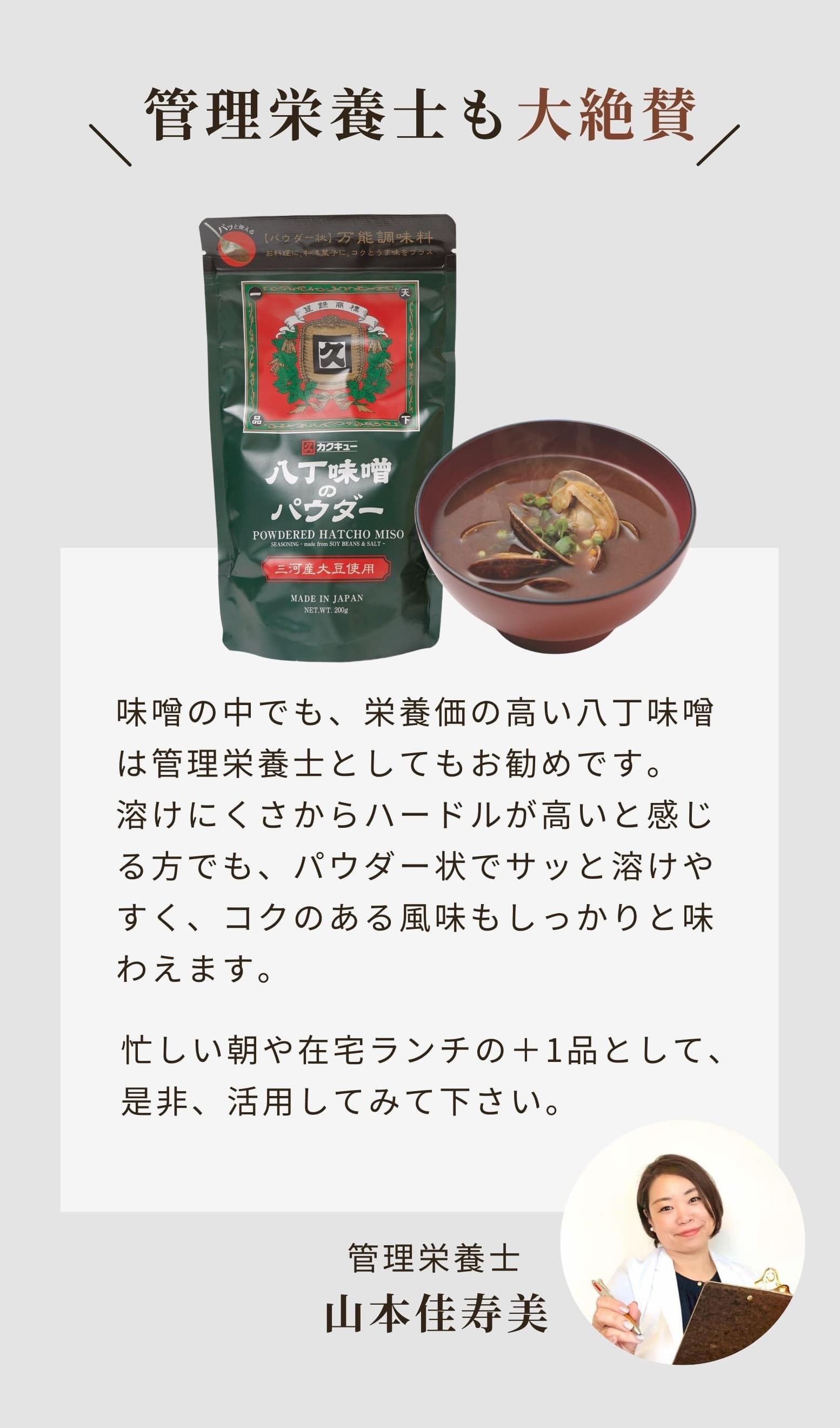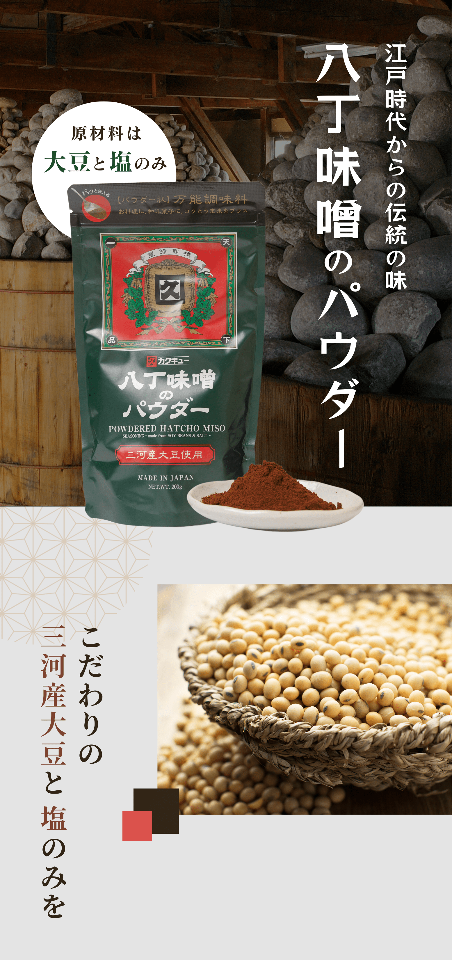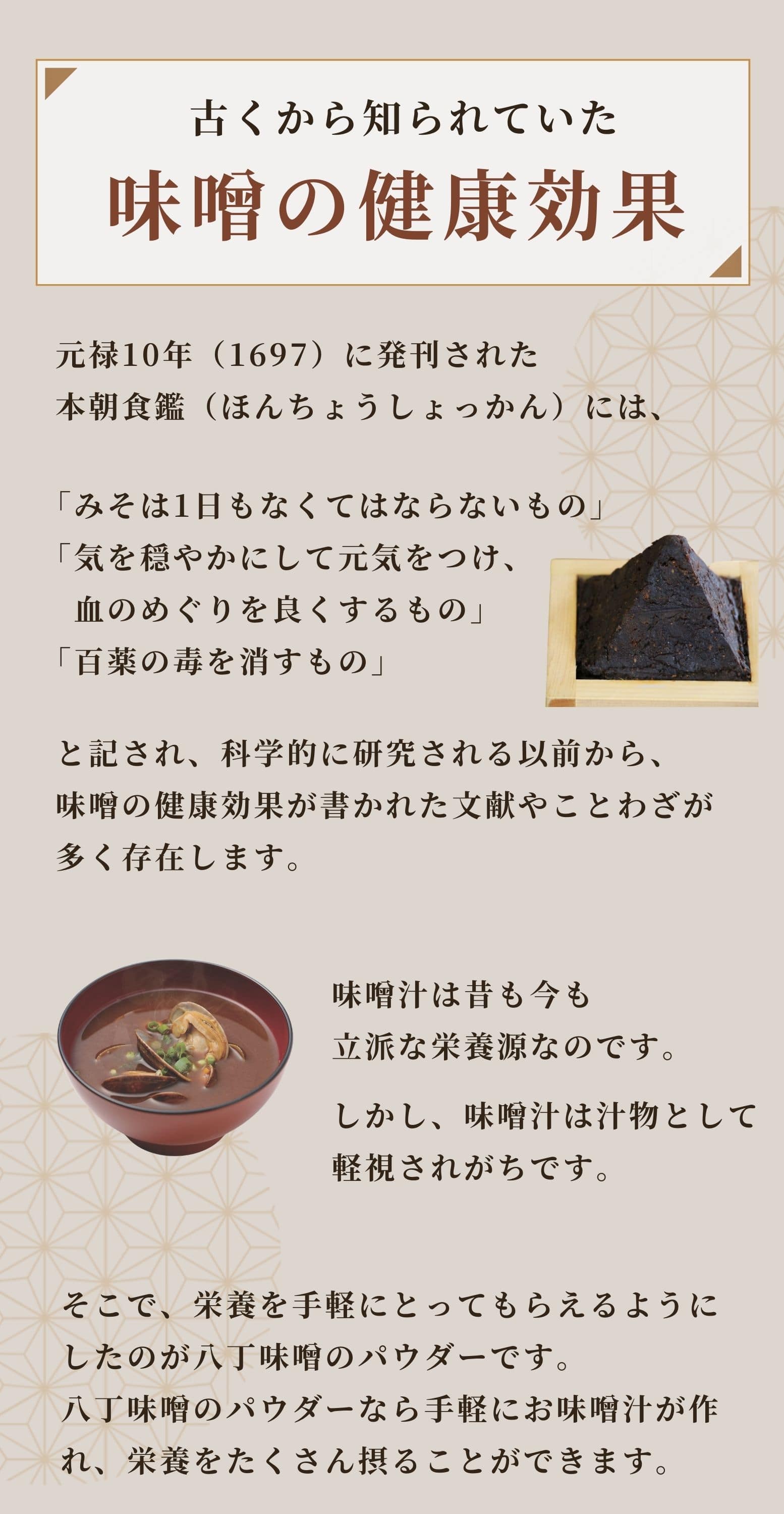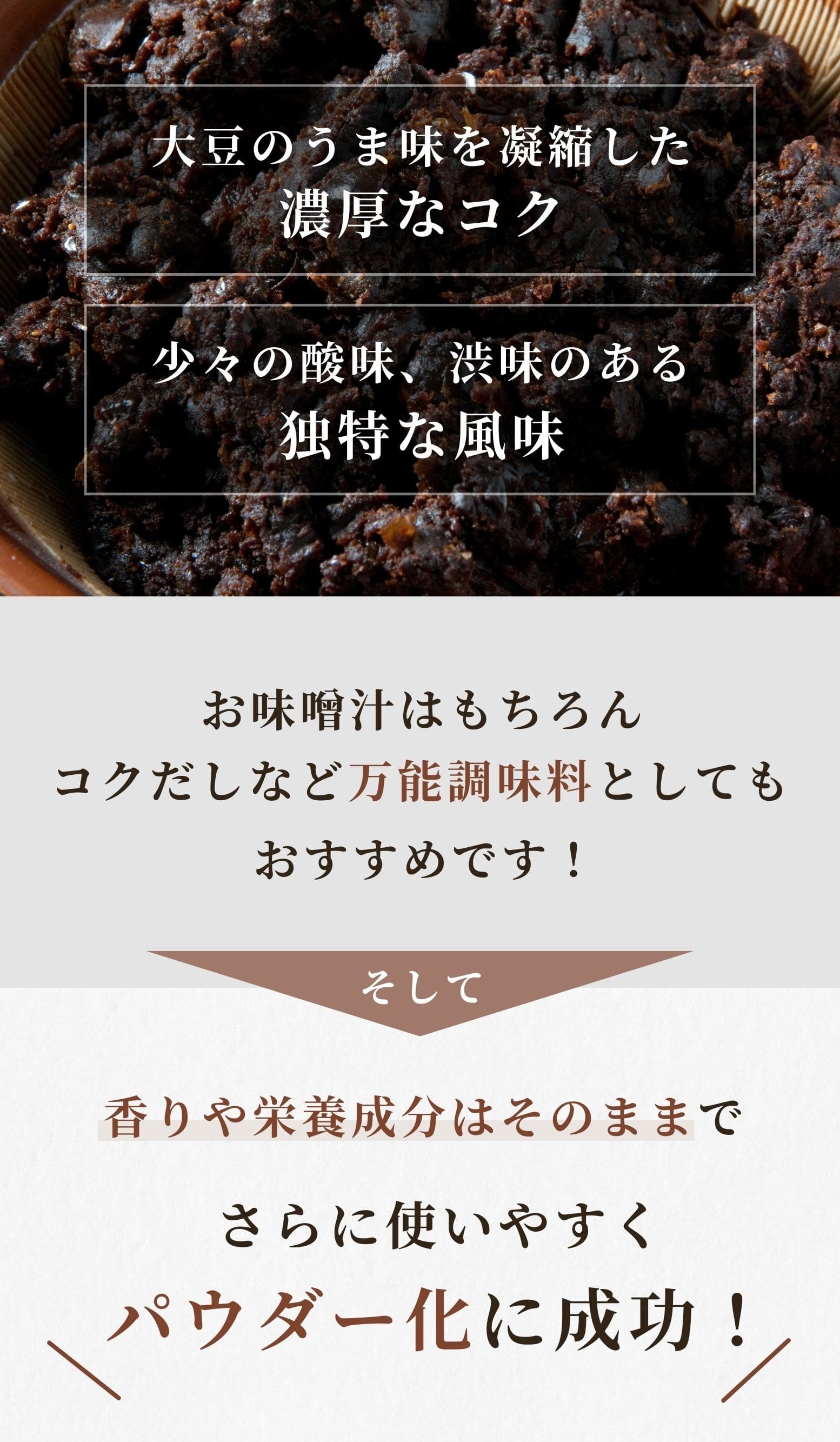 フリーズドライ製法で「三河産大豆 八丁味噌」の旨味と栄養をそのまま粉末化。